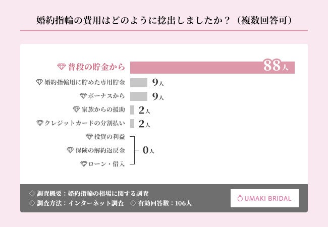 婚約指輪を費用捻出、『普段の貯金から』が圧倒的多数