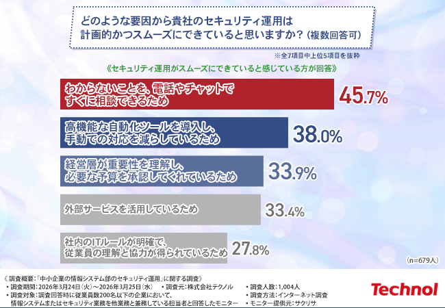 では、どのような理由でセキュリティ運用がスムーズにできていると感じるのでしょうか。