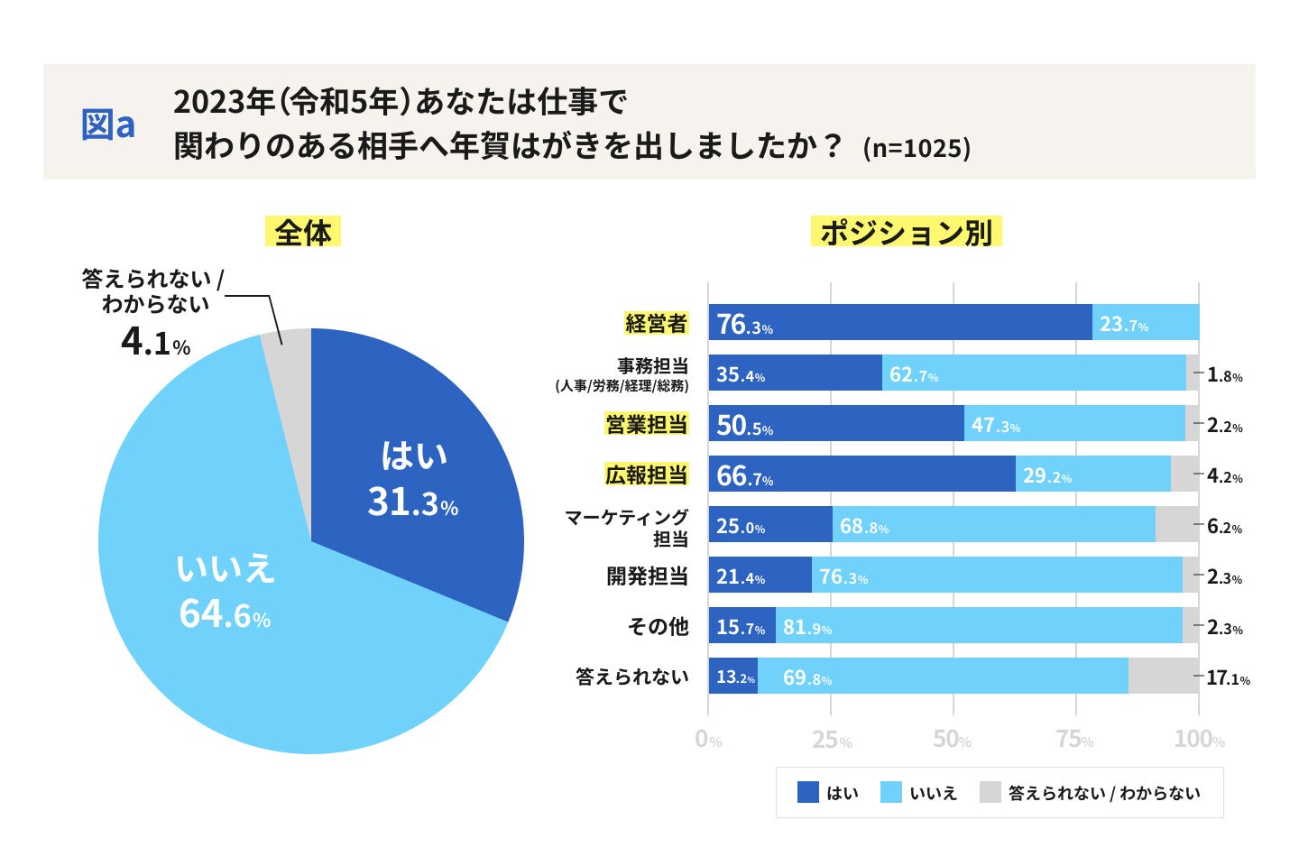 - 2023年仕事で関わりのある相手へ年賀はがきを送った人は約3割