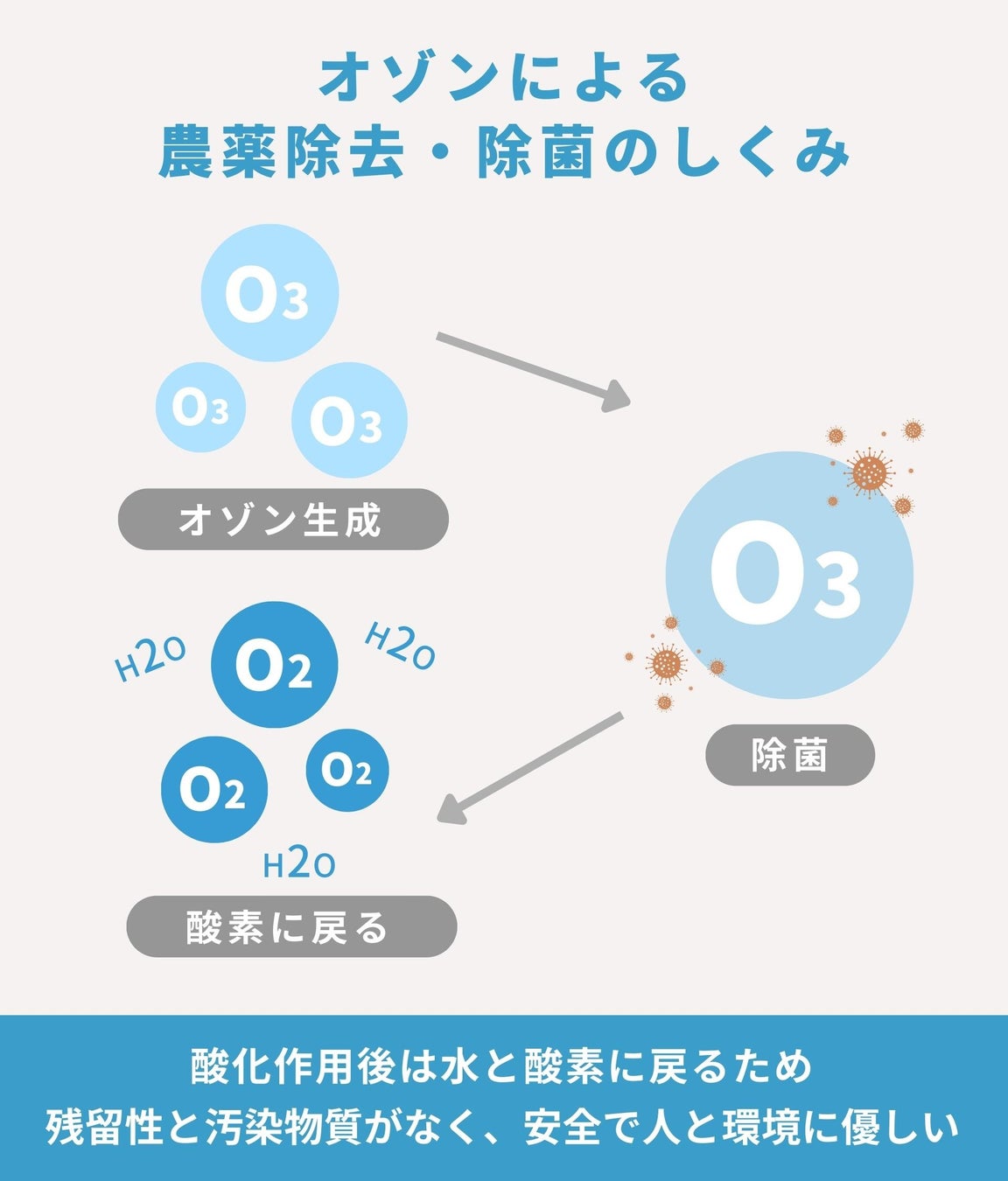 微生物の量も減らすため、野菜や果物の鮮度保持にもお役立ちいたします。