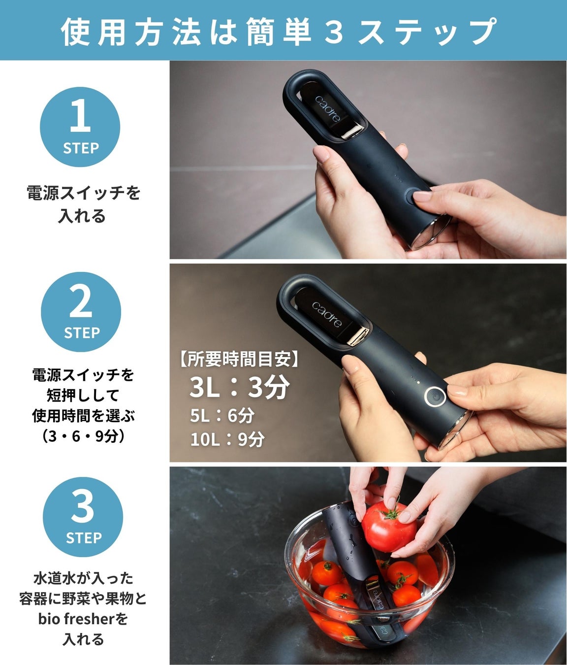 たった3分!水だけで食材除菌・食器洗浄ができるcadre bio fresher