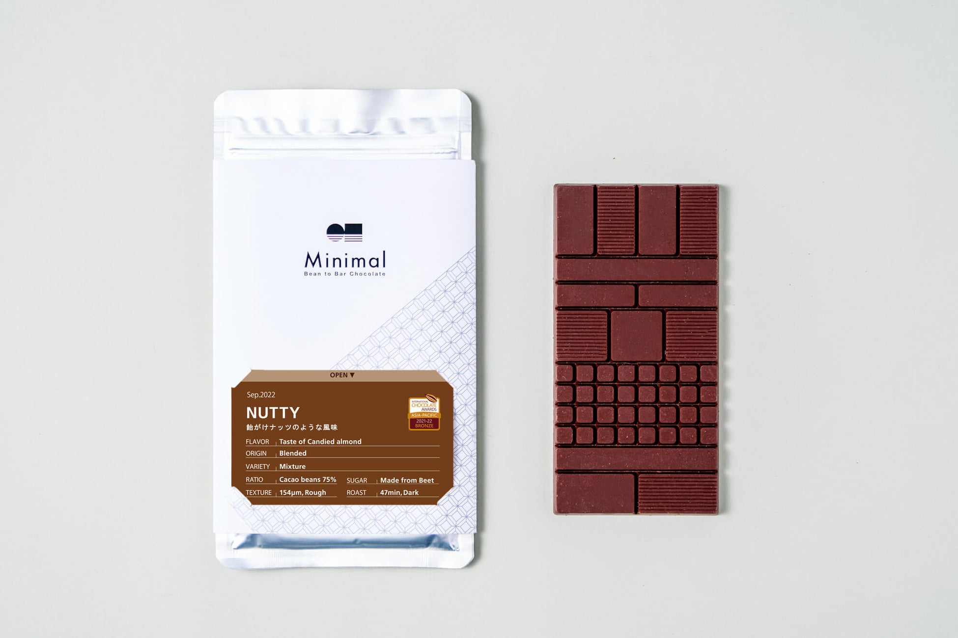 余分なものは引き算するミニマリズムの考えをもとに作られたチョコレートは、ザクザクとしたカカオ豆の食感、クリアに感性に訴えるカカオ豆の香りが特徴。