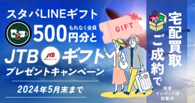 宅配買取成約でスタバギフト&JTB旅行券プレゼント