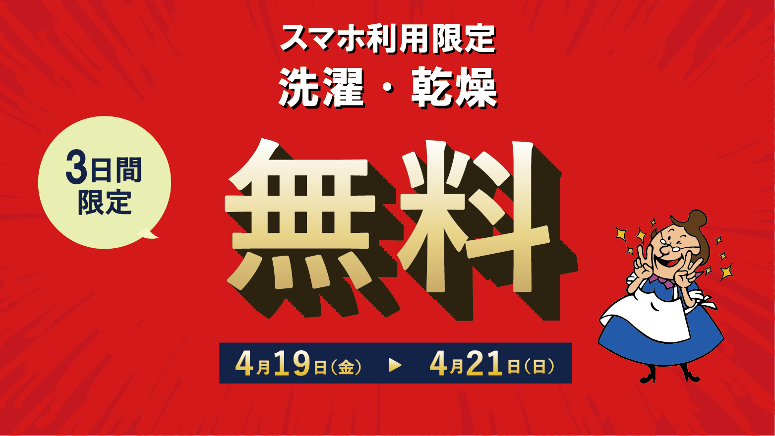 将来、洗濯・乾燥を完全無料でご利用いただけるように、店舗・期間限定で「セルフランドリー無料営業」を実施します。