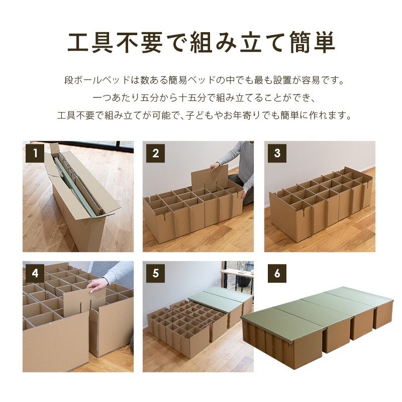 安心と快適を兼ね備えたダンボールベッド『カラートン』 「いつも」でも、「もしも」でも使えて「ベンチ」にもなり、最後は捨てずに「着火材・燃料」にできる便利な防災アイテム!