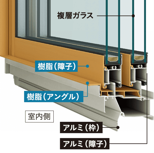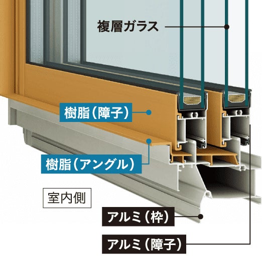 アルミと樹脂の複合構造、複層ガラスを採用しています。室温を快適に保ちながら冷暖房エネルギーを大幅に削減し、不快な結露も抑えます。
