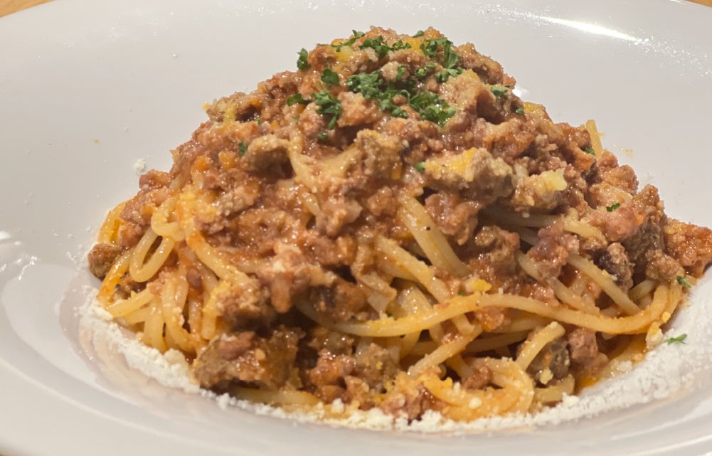 ビーフミートソースパスタ、ベーコンときのこのペペロンチーノ