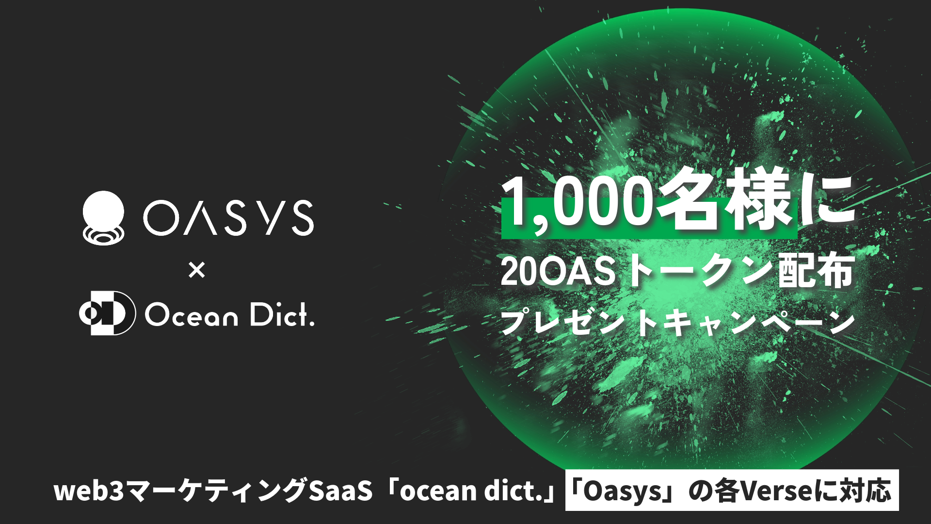 ocean dict.のOasys対応を記念して、抽選で1,000名様に20OASトークンを配布するプレゼントキャンペーンを11月17日より開始いたします。
