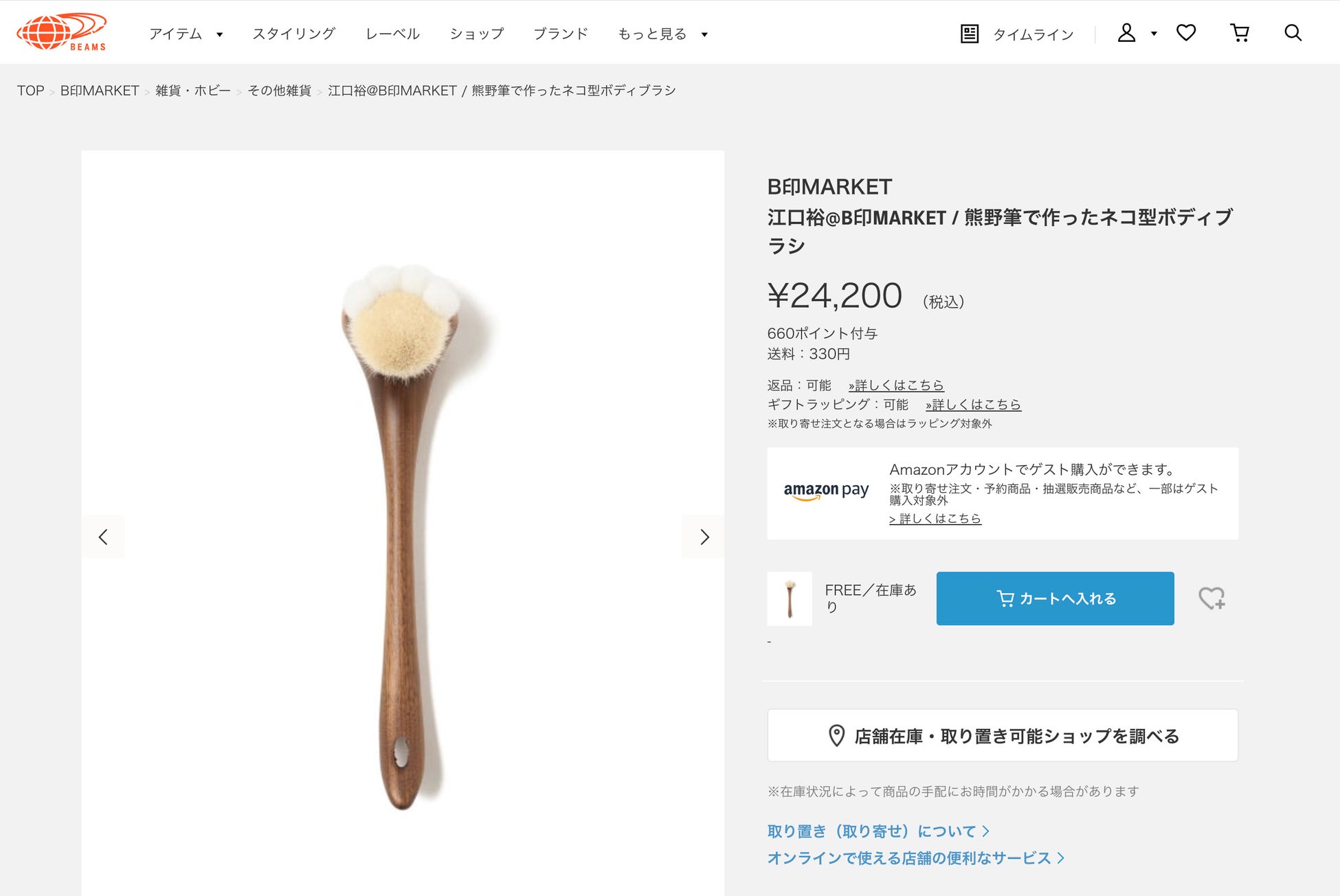 またネコ型ボディブラシは、株式会社ビームスが運営するオンラインショップ「B印MARKET」で販売が開始された。開発にも携わったビームス広島の太鼓判だ。