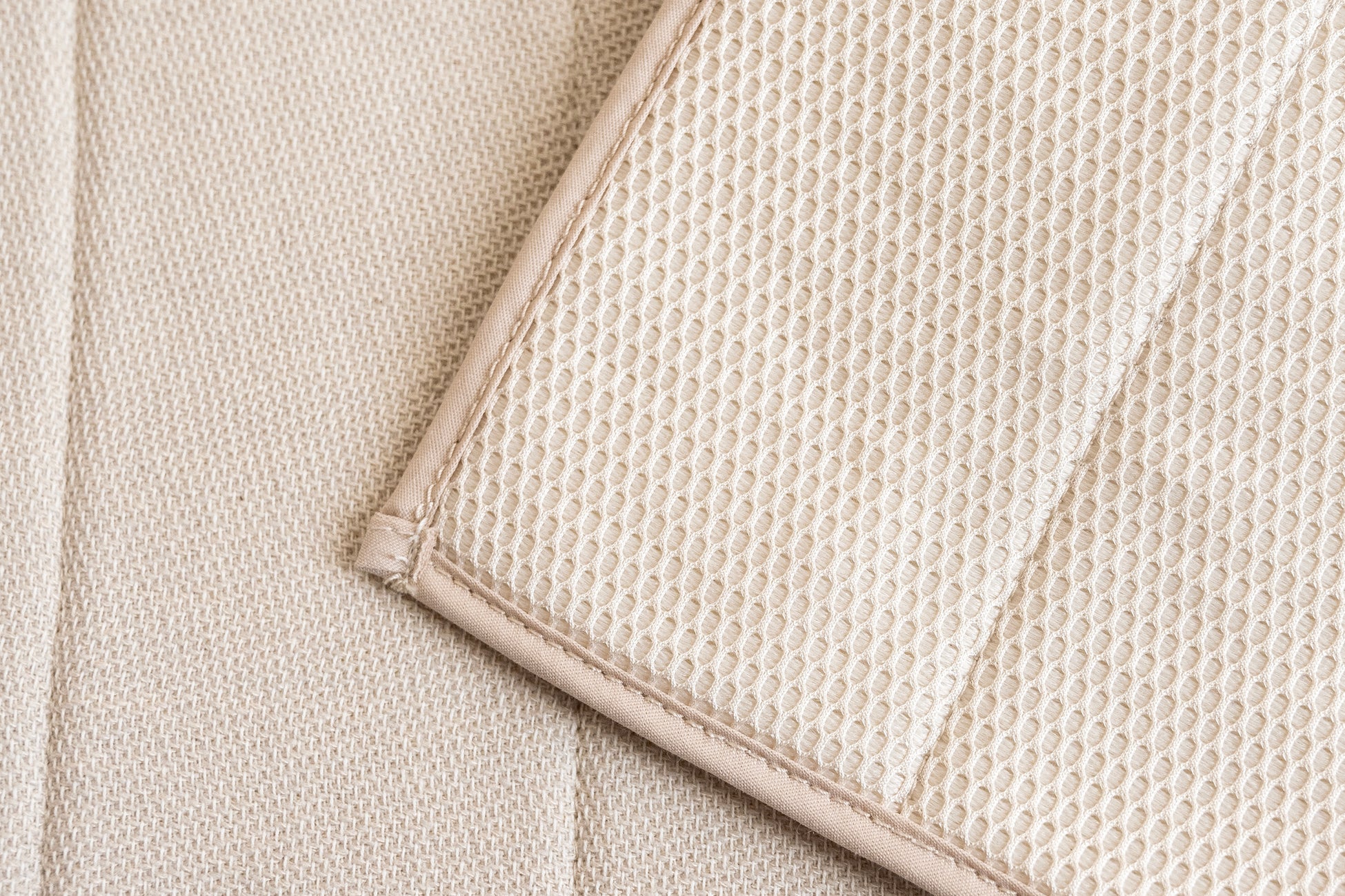 優れた消臭効果で、気になるニオイも抑え、キッチンを常に清潔に保ちます。裏面には通気性に優れたハニカム構造のメッシュ生地を使用しているので乾きやすくなっています。
