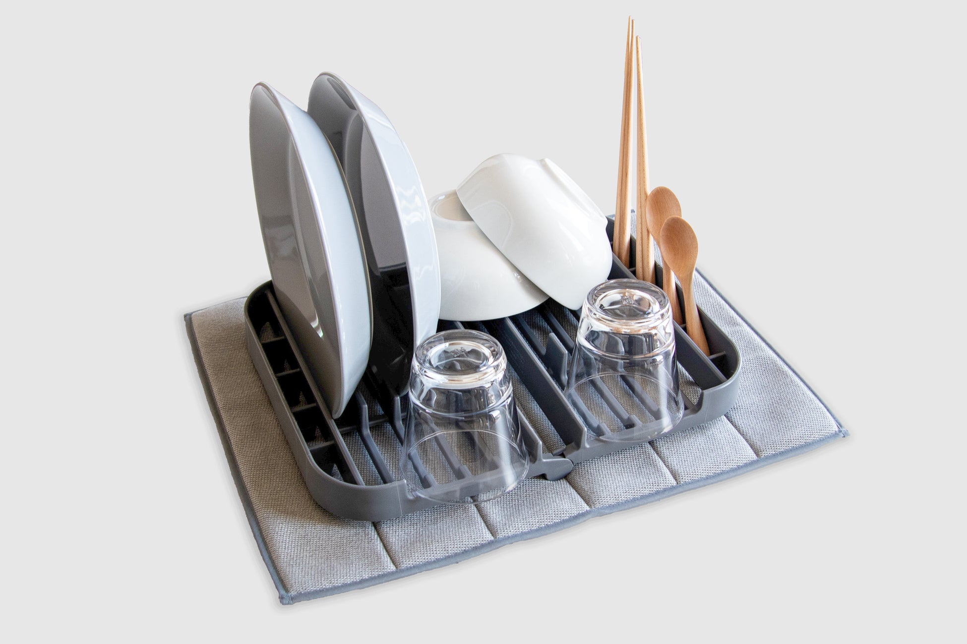 【新発売】コンパクトにたためる水切りラック&梅炭を使った消臭・抗菌水切りマットでキッチン清潔!