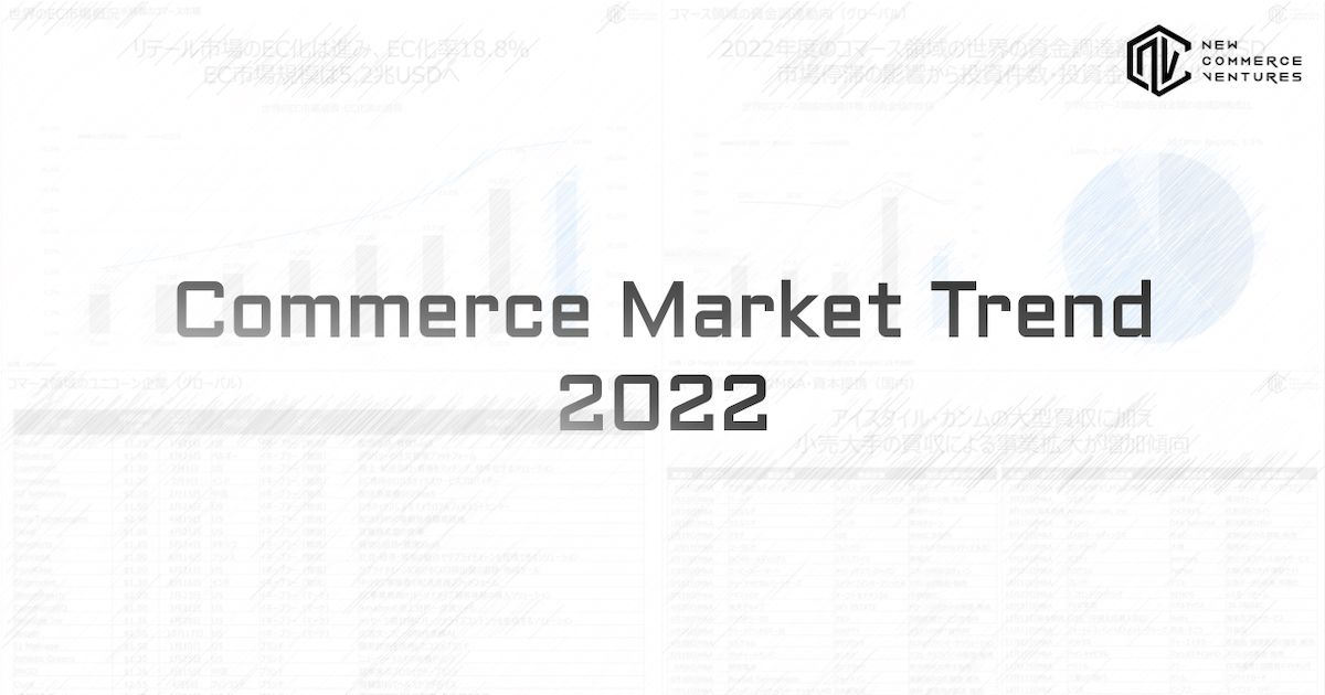 「Commerce Market Trend 2022」は、2022年の海外・国内のコマース市場動向、資金調達・IPO・M&A動向、2023年の注目トレンドをまとめたレポートです。