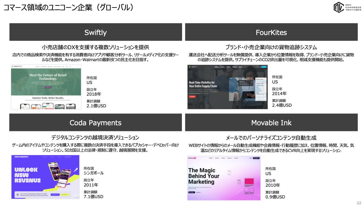 2022年のコマース領域の新規ユニコーン