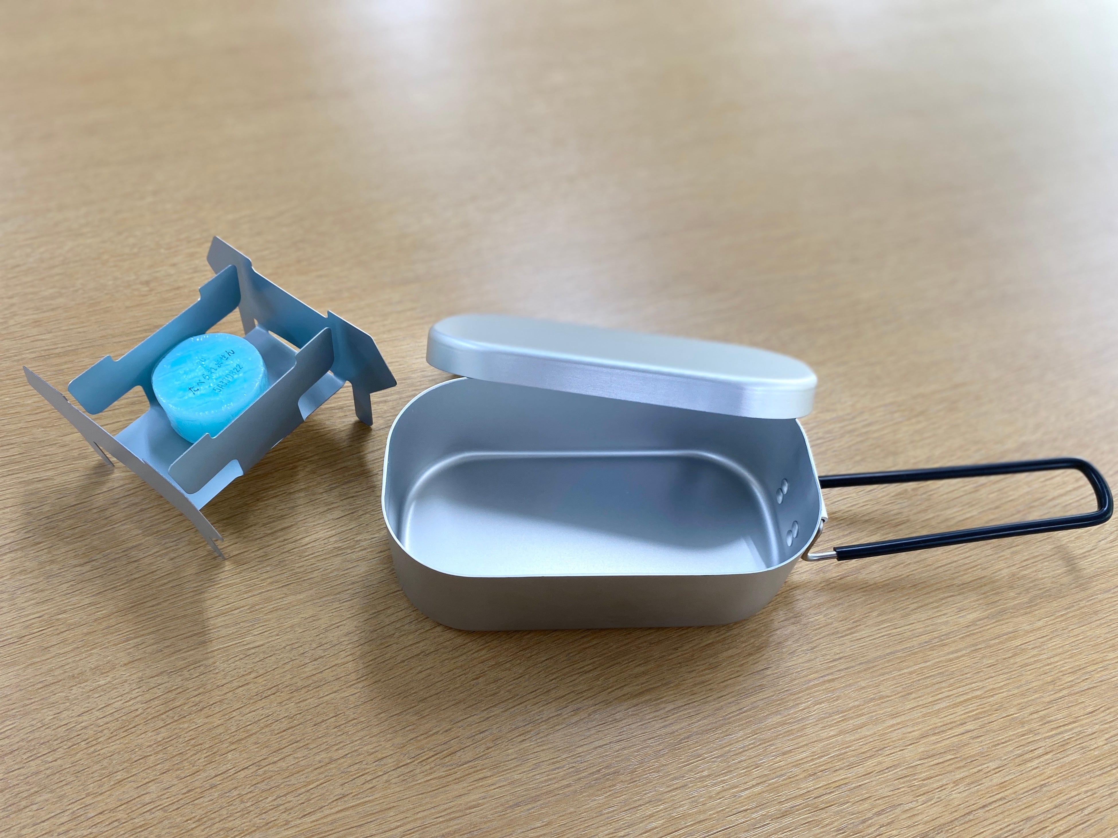 ご飯を焚いたりお鍋として活用できるメスティンや折り畳み式のミニコンロ(固形燃料付)も標準装備しています。