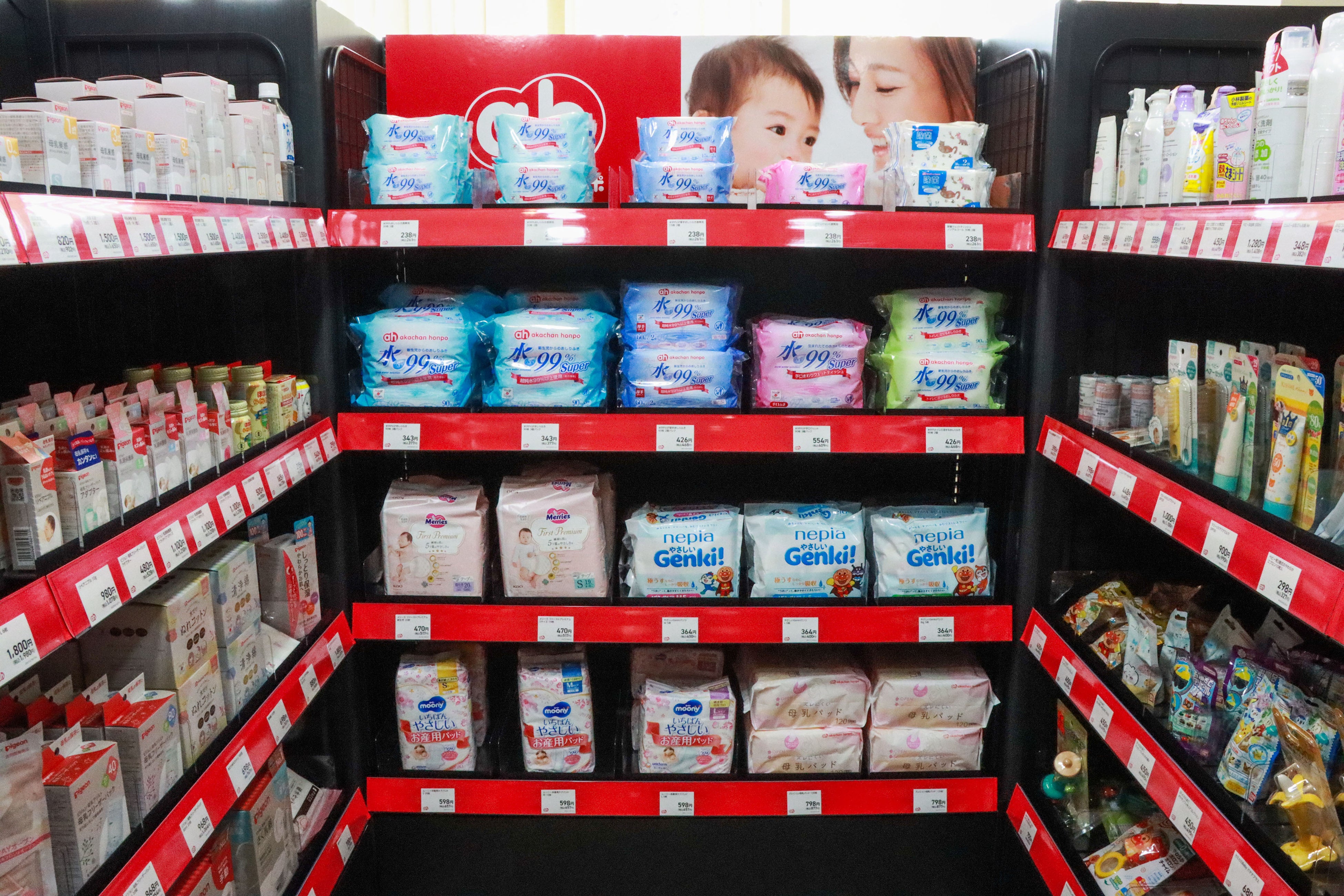 おしりふき、ベビー飲料、ベビーフードなど