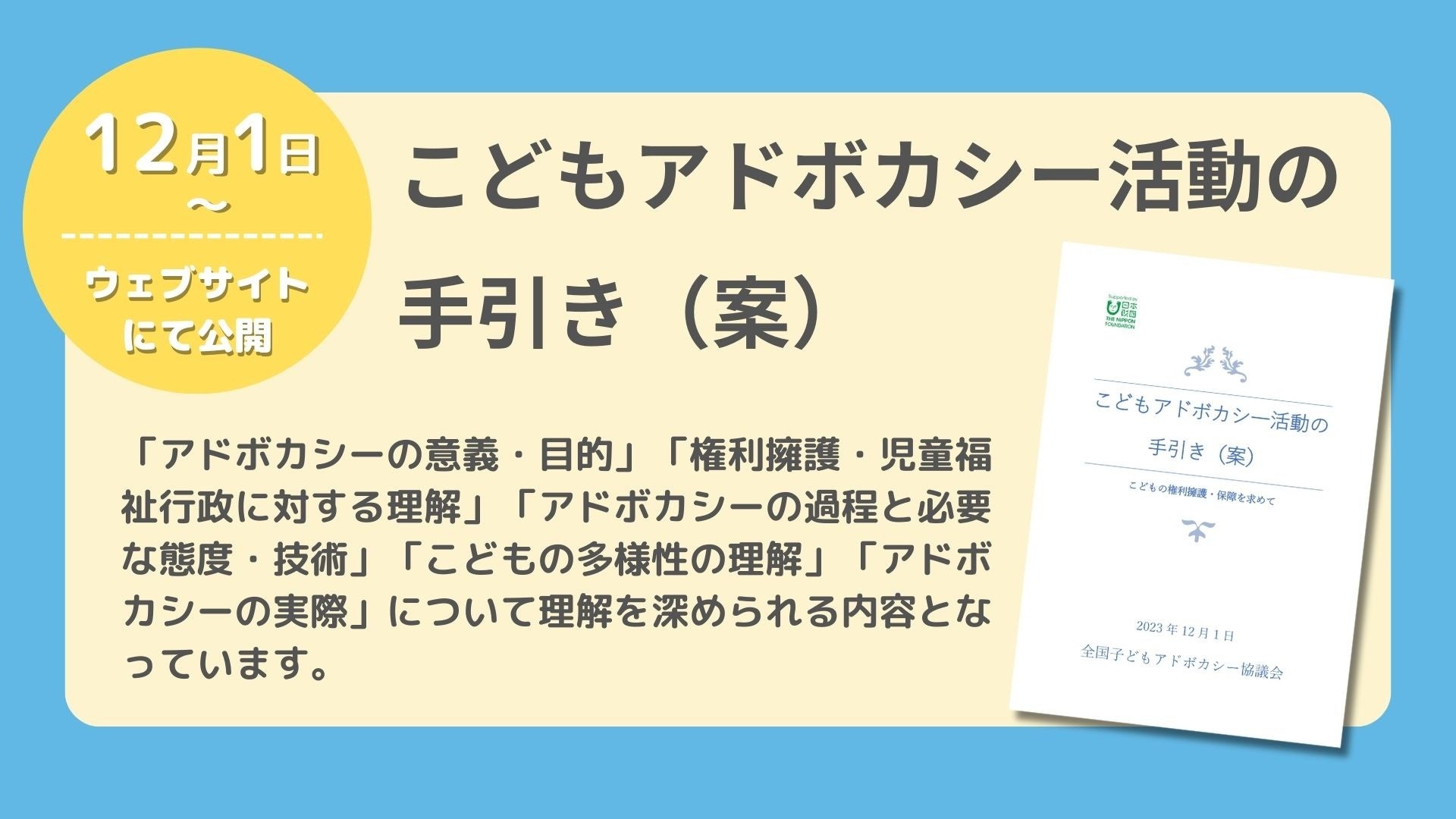 ▶「こどもアドボカシーの手引き(案)」:https://www.child-advocacy.org/activities/15617