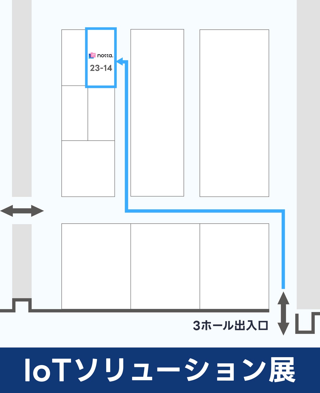 Notta(ノッタ)出展ブース番号は、3ホール『23-14』です(下図青枠)。