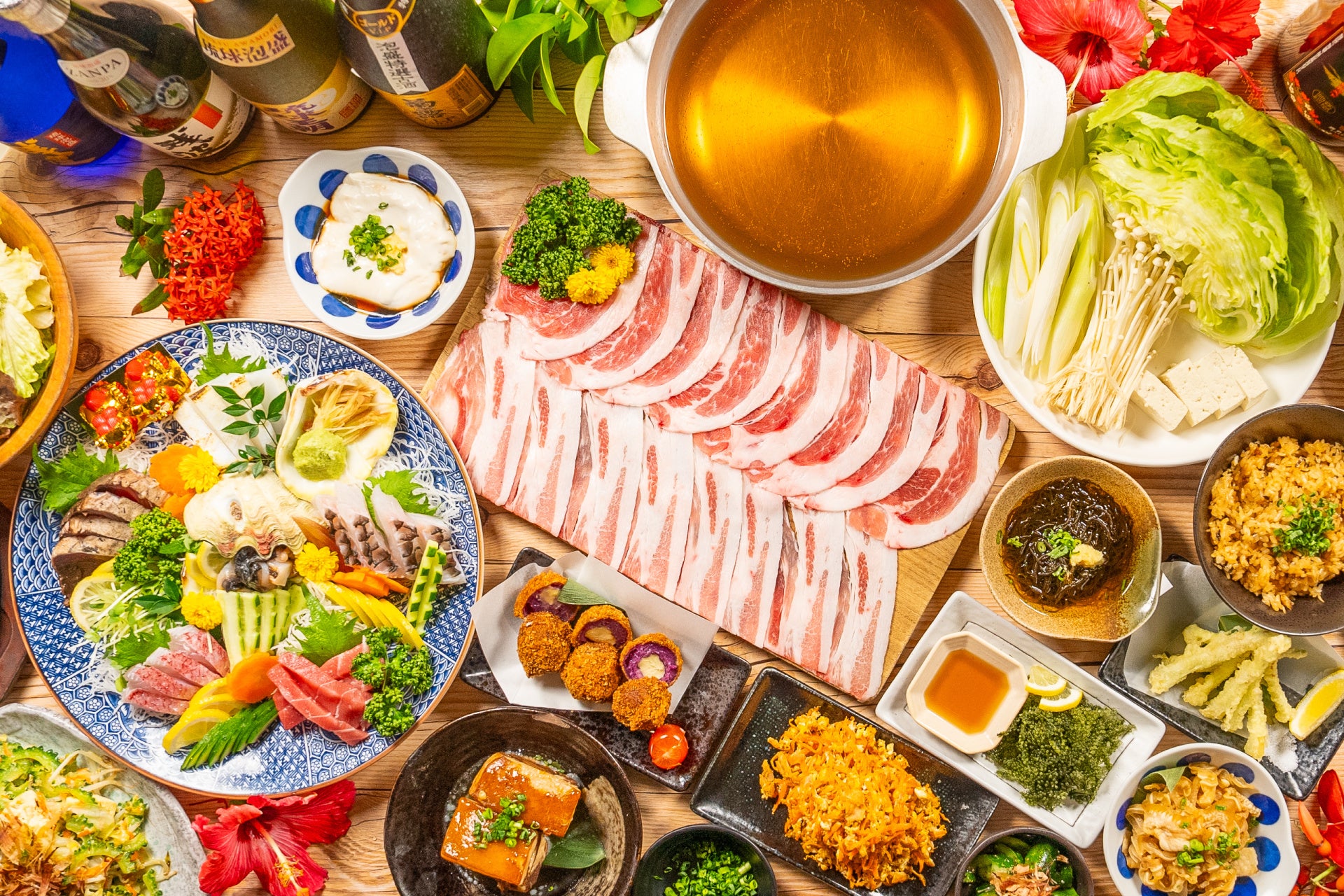 『沖縄料理と言えばこれ』とされる【アグー豚のしゃぶしゃぶ】や【やんばる鶏の炭火焼き】、【沖縄そば】や【ゴーヤチャンプルー】に【サーターアンダギー】まで、自慢の味付けでご提供。