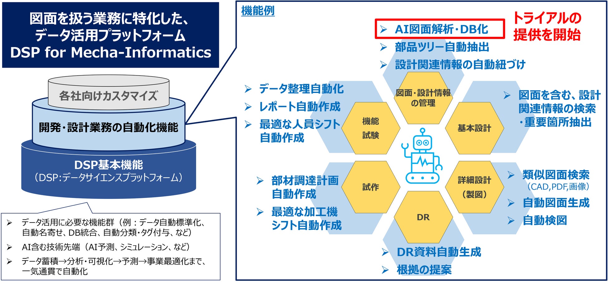 AI図面解析によるOCRに依存しないデータベース化 のトライアルを提供開始/図面を扱う開発・設計業務の効率化に特化したデータ活用プラットフォーム「DSP for MechaInformatics」