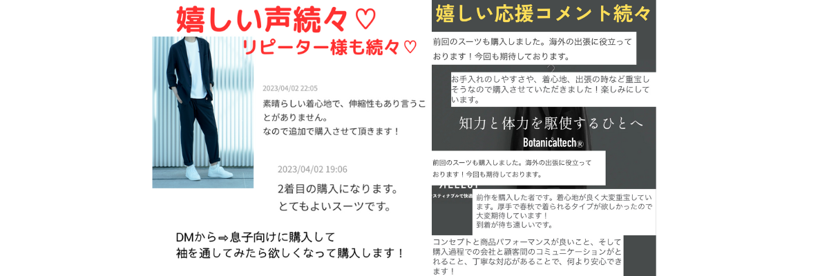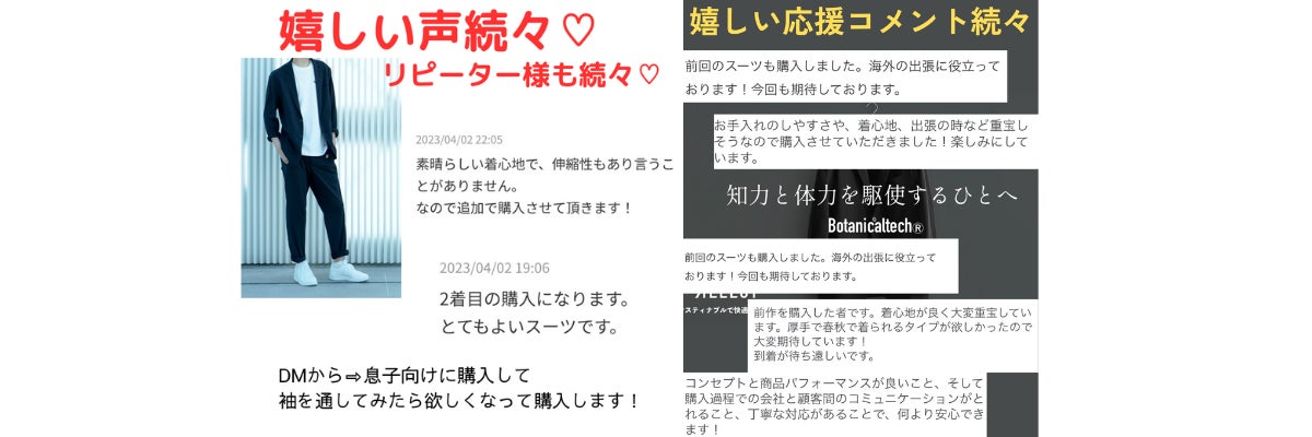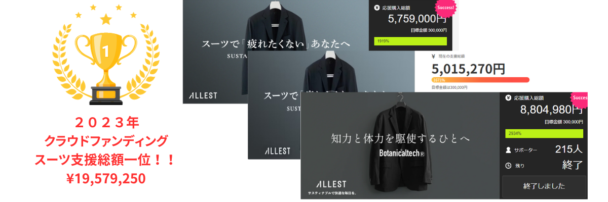 2023年スーツ部門でクラファン累計販売額が1,900万円を突破し人気1位を獲得(自社調べ)。