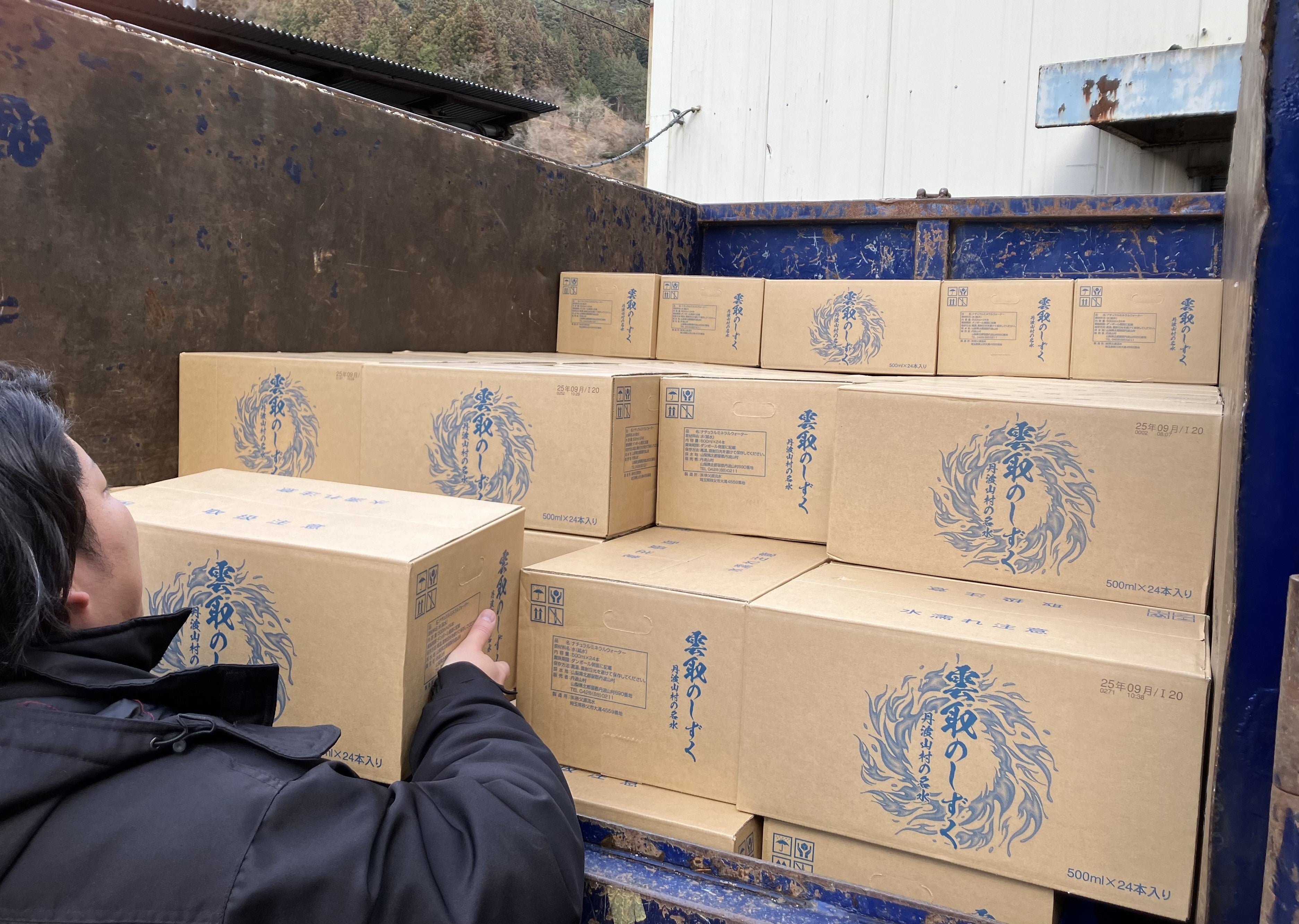 丹波山村ではかつて、防災用に備蓄するミネラルウォーターを県外から購入し、消費期限を迎えるごとに廃棄していましたが、雲取のしずくを開発したことで、備蓄水のコスト削減を実現。防災用として一定の量の備蓄をしつつ、村内の道の駅や、温泉施設「のめこい湯」などで販売しているほか、1箱24本入りでふるさと納税の返礼品としても扱っています。雲取山が人気漫画「鬼滅の刃」のゆかりの地となっていることにあやかり、漫画のタイトルをイメージさせるラベルデザインを採用しています。