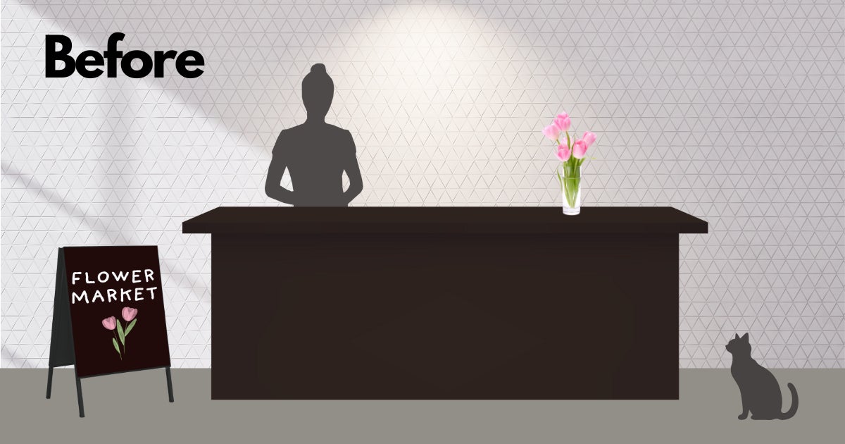 デジタル映像でフロント演出ができるキャスター付きデスク。