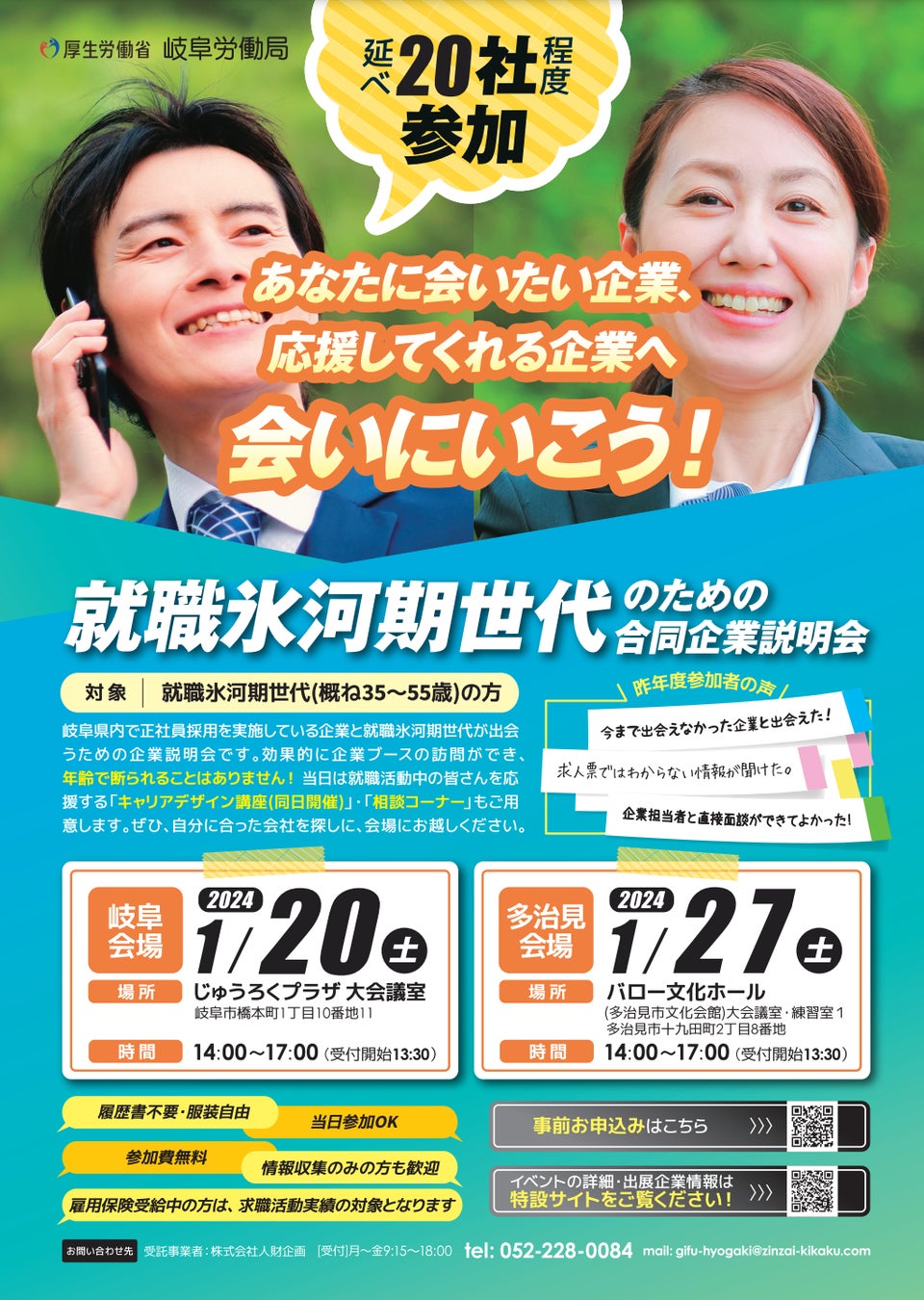 【正社員の仕事をお探しの方、必見!岐阜労働局主催だから安心】就職氷河期世代を対象とした合同企業説明会を1月20日・27日に開催します!