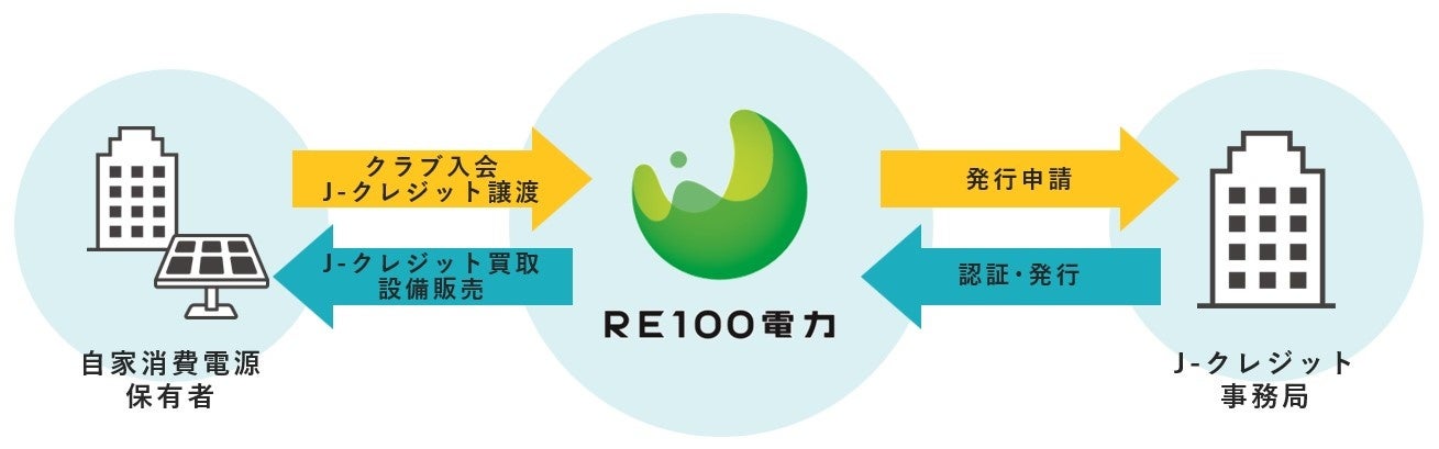 当プロジェクトはJ-クレジット制度*1を活用したもので、複数拠点の自己託送を含む自家消費の太陽光発電設備にて創出された環境価値を取りまとめることにより、本来埋没してしまう環境価値をJ-クレジット化するものです。お客さまはクラブへ入会いただくことでJ-クレジット創出によるCO2削減への貢献や、クレジット売買益をエネルギーコストの削減に充てていただけます。