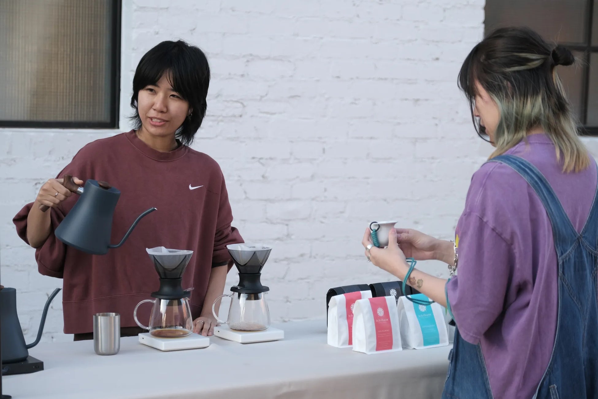 オリジナルのテイスティングカップと共にさまざまな味のコーヒーをお楽しみください。また、コーヒだけでなく各ロースターからコーヒー豆やオリジナルグッズの購入をすることもできます!