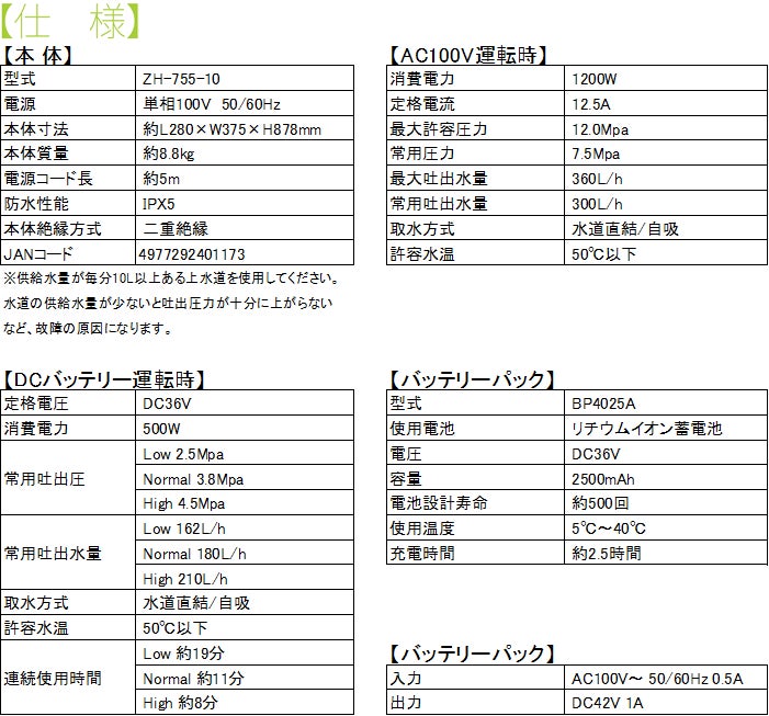 ”ZH-755-10”はコードレスなので、気軽にどこでも使用できます。またバッテリー洗浄機の中でも