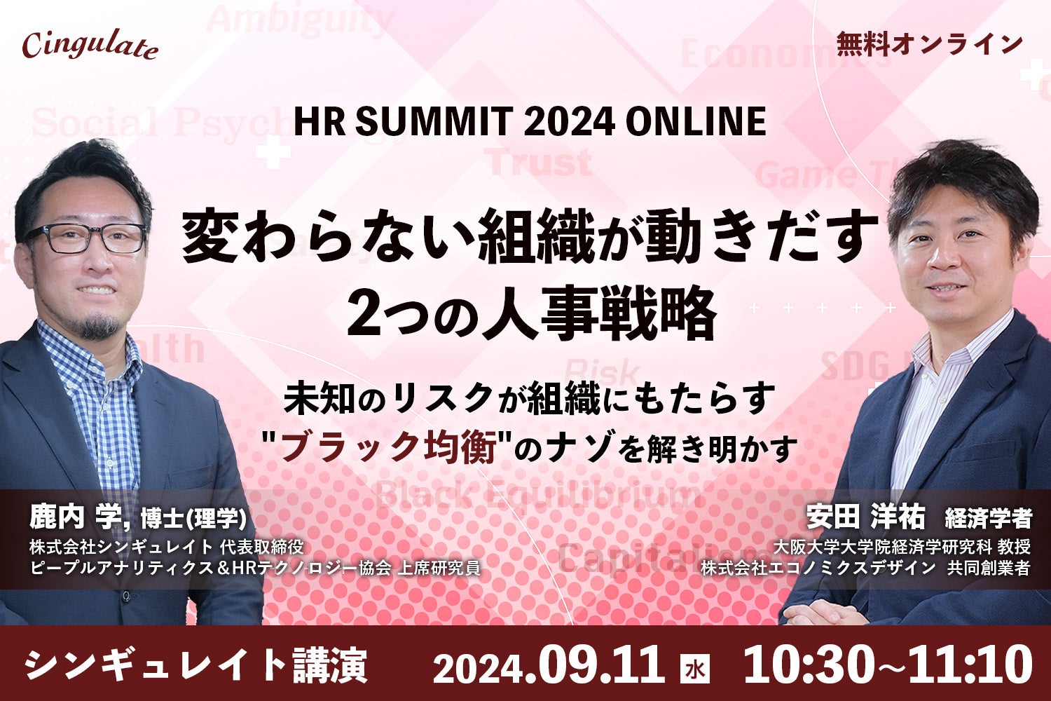 経済学者・安田洋祐さんとシンギュレイト代表鹿内の対談講演が決定!「変わらない組織が動きだす2つの人事戦略 HR SUMMIT 2024 ONLINE」