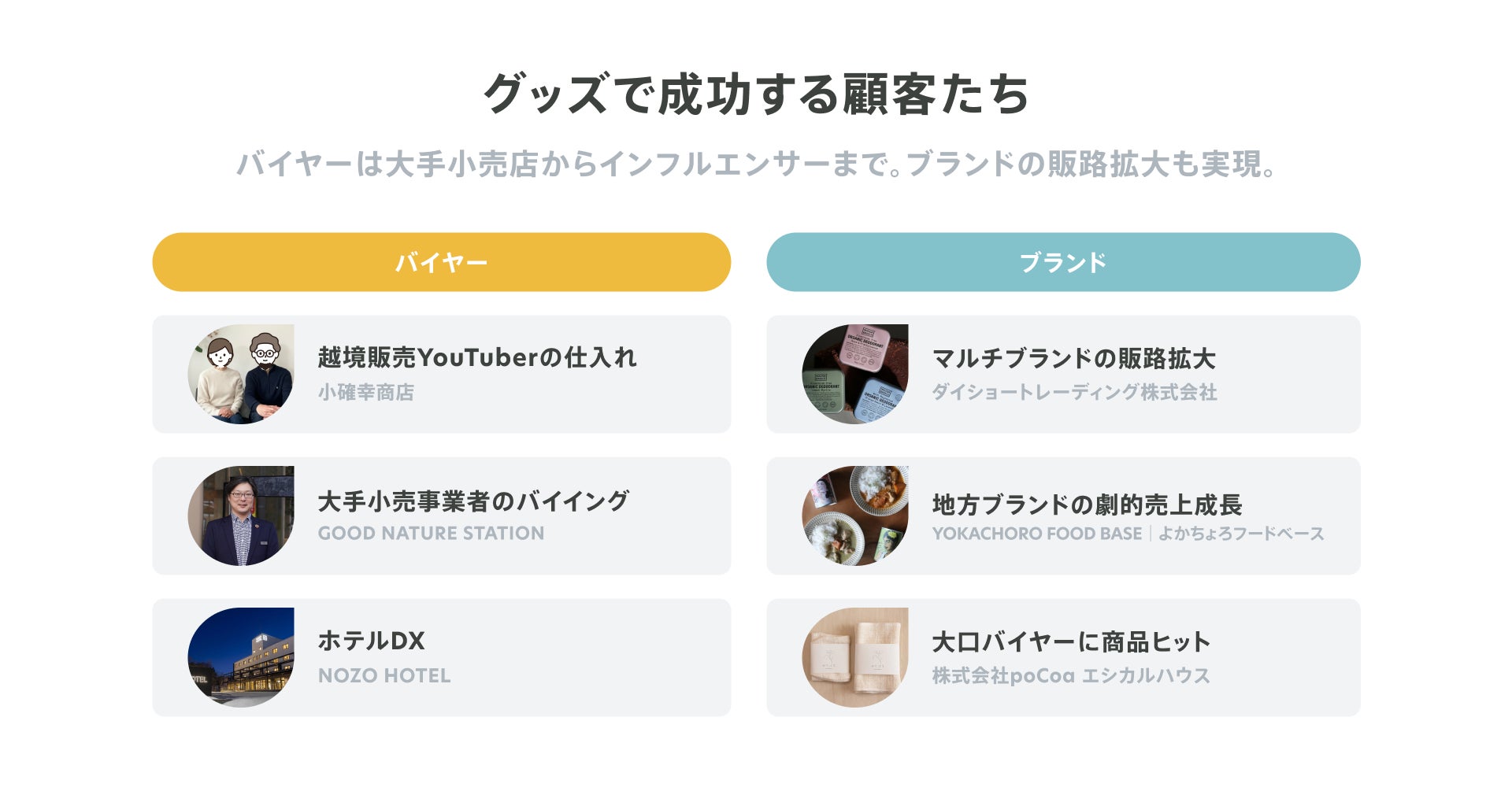 今回調達した成長資金を活用し、グッズは卸売・仕入が簡単に完結できるプラットフォームとして、労働集約的な状況にならざるを得ないブランドとバイヤー向けワンストップコミュニティとして進化してまいります。