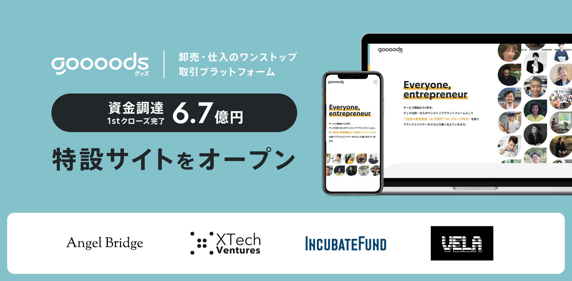 卸売・仕入がワンストップで完結するB2Bコマースプラットフォームを提供するgoooods株式会社(東京都港区、代表取締役CEO:菅野圭介)は、2度目となる資金調達ラウンドの1stクローズで6.7億円の資金調達を完了したことをお知らせいたします。