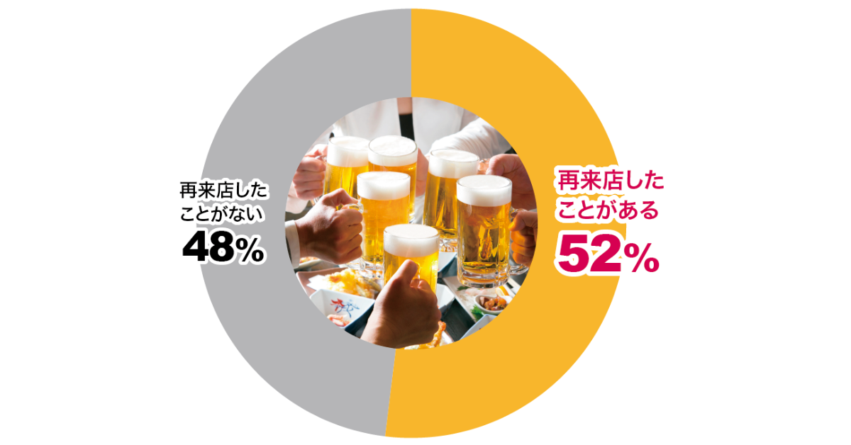 52%のお客様が「宴会で印象の良かった店舗に再来店する」と回答。