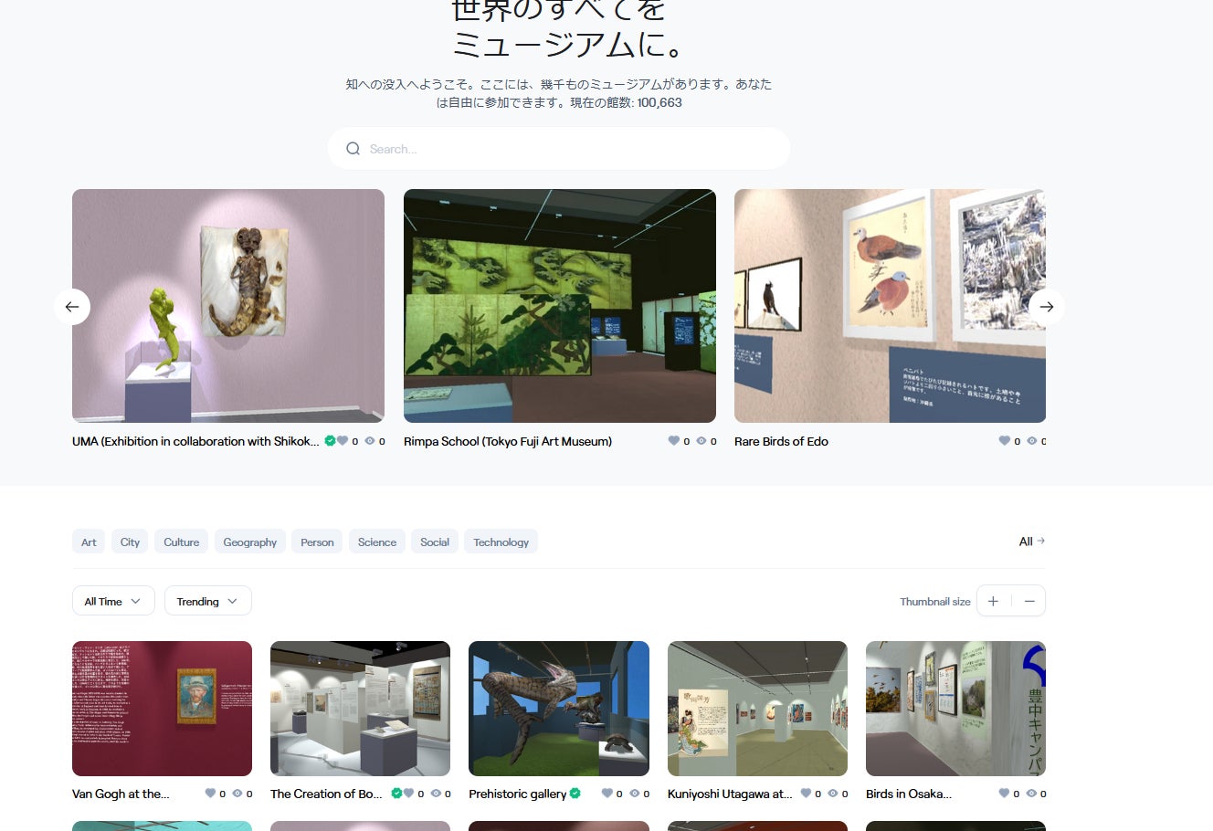 本リリースと連動し、バーチャルミュージアムを駆動するプラットフォームとして、Virtualion.com を立ち上げ、10万館のバーチャルミュージアムを先行公開(β版)いたします。今後、このプラットフォーム上に、2024年9月をターゲットに、ミュージアムの作成・公開機能をドッキングし、誰もが作って身近に感じられる「バーチャルミュージアム」を全面展開してまいります。