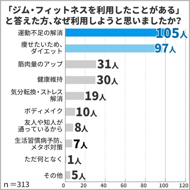 次に、ジム・フィットネスを利用したことがない3割の方を対象に、その理由について聞いてみました。