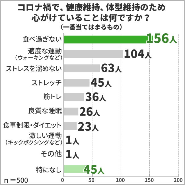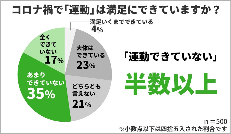 ジム・フィットネスの利用を継続できなかった理由の一つでもある「コロナ禍」で、運動が満足にてきているか?を質問してみました。