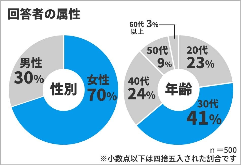 今回アンケートに答えてくれた方の性別、年齢の割合は以下の通りです。