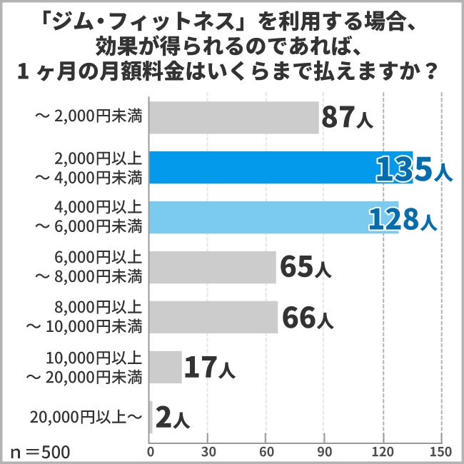 実際に払っている月額ではなく、理想の体を手に入れるために月額いくらまで出せるか?というアンケートも取ってみました。