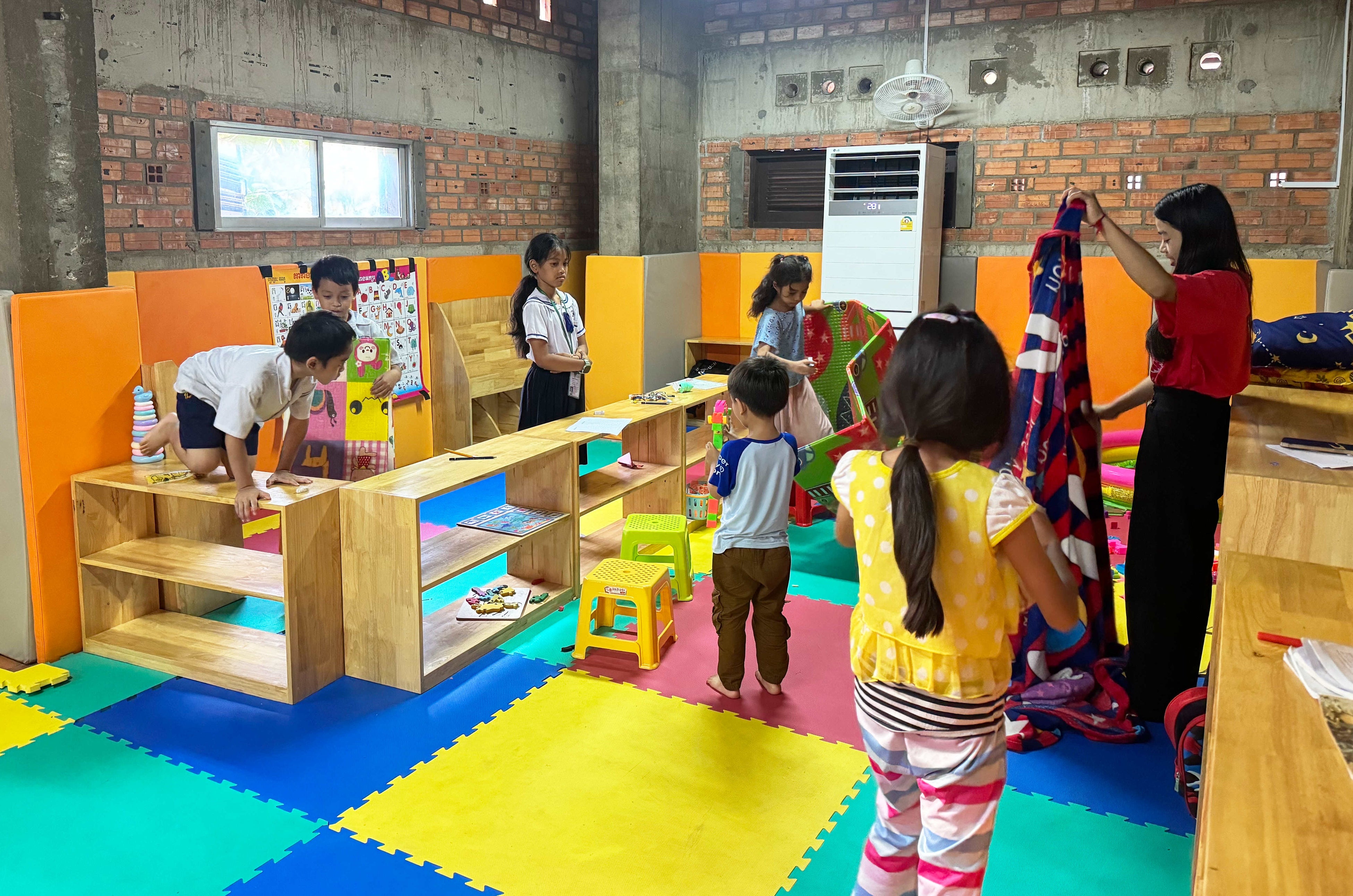 今回開設した保育園は、プノンペン市内ウナローム寺院内に、児童支援施設「ひろしまハウス」と隣接して整備されました。ひろしまハウスで勉強している児童生徒が継続的に学習できるように、彼らの幼いきょうだいたちを無償で預かる施設です。
