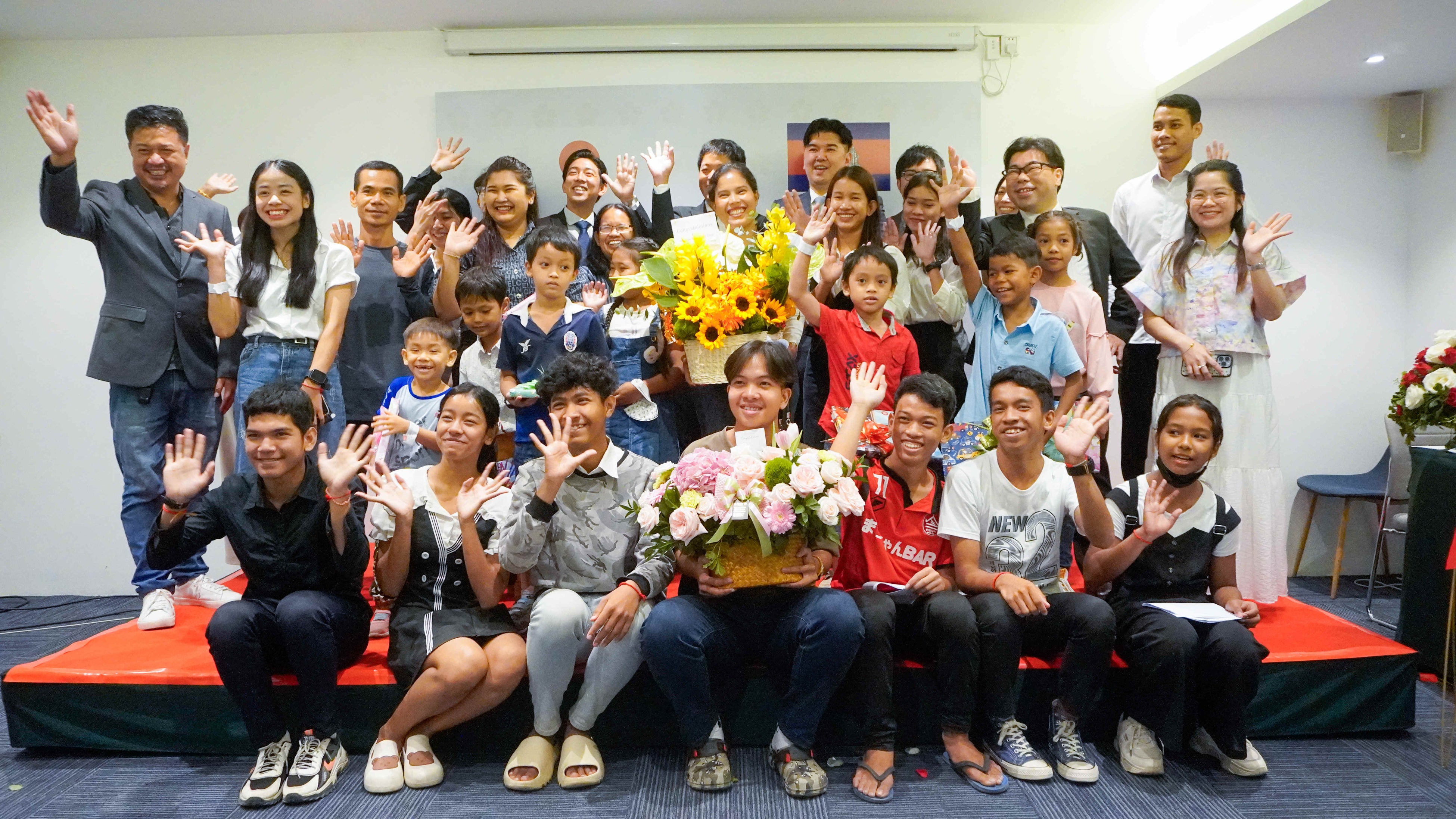 11月12日、現地プノンペンにて、本学根岸正州(まさくに)理事長や、ひろしまハウスの友廣壮希(まさき)代表、教育活動家の平原依文さん、日本大使館およびJICA(国際協力機構)の関係者の皆様をお招きし、オープニングセレモニーを盛大に開催いたしました。なお、この取り組みは、日本カンボジア友好70周年記念事業にも認定されました。