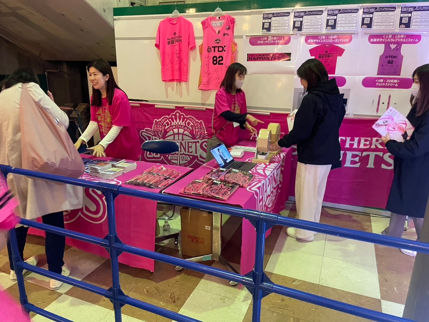 試合当日は、会場内に設置されたドゥファインのゲームスポンサーブースにて、選手のサイン入りグッズが当たるガラポン抽選会を開催。