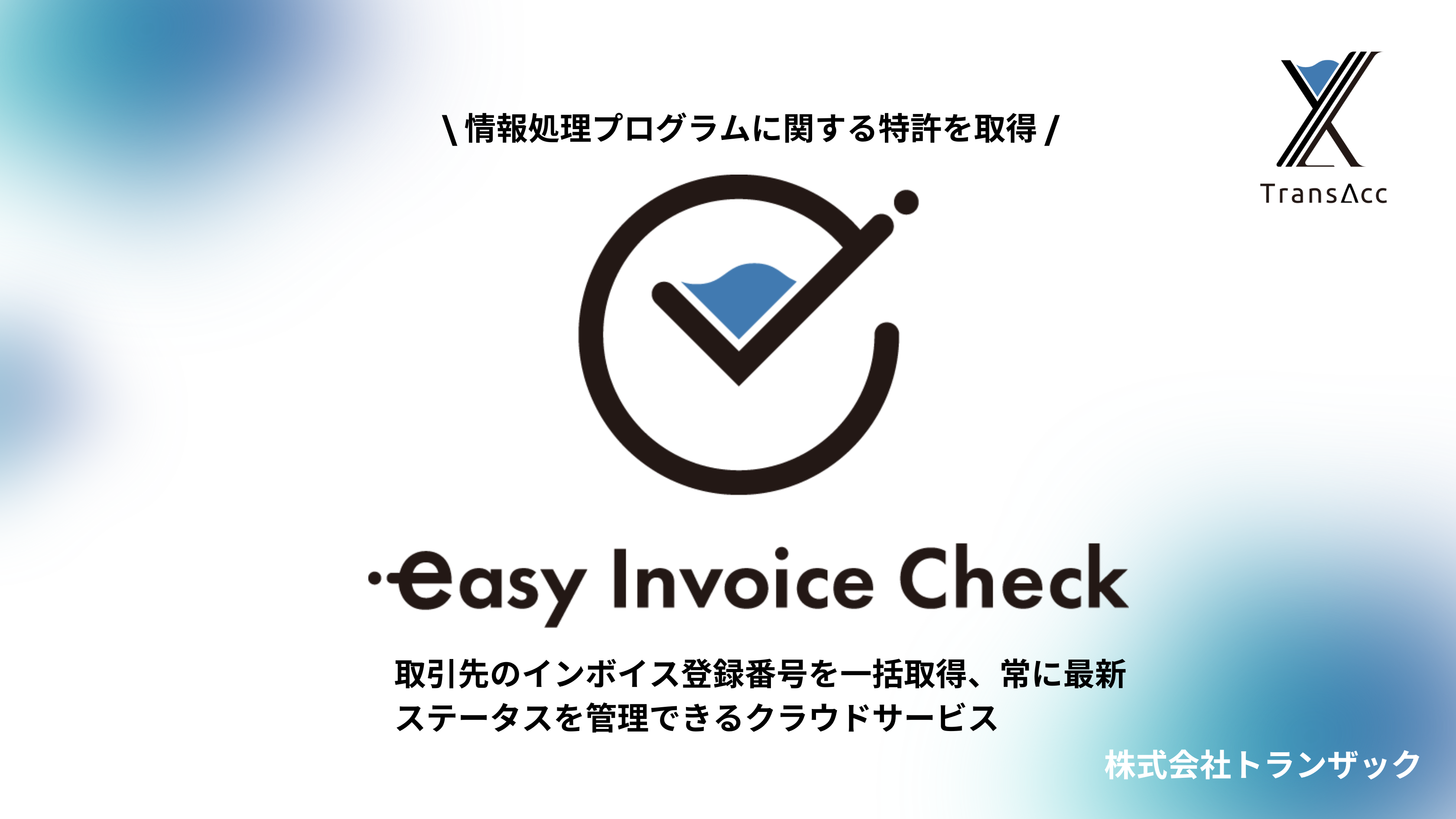 インボイス登録番号検索クラウドサービス「easy Invoice Check」を提供するトランザック 情報処理プログラムに関する特許を取得