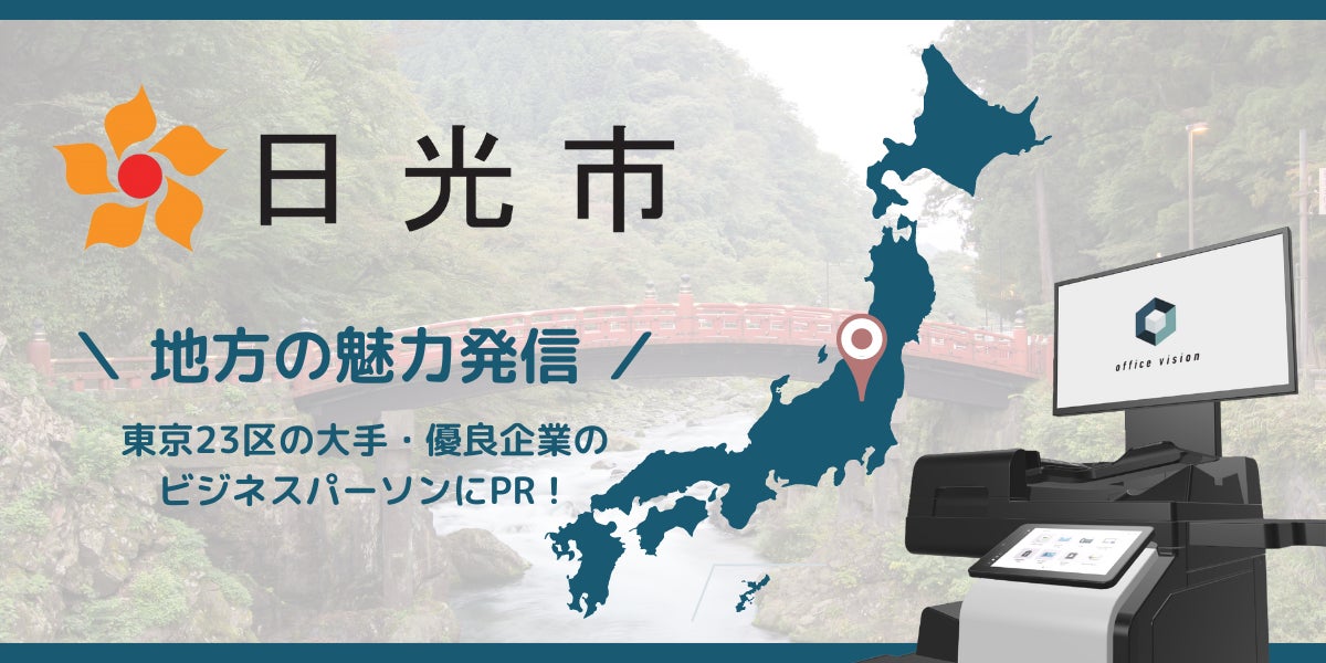 日光市の新しいブランドコンセプト「NEW DAY,NEW LIGHT.」。日光市は仕事の疲れを癒したい方、新しいアイデアを生み出したい方、新しい趣味を見つけたい方などに、新しい光を感じていただける居場所を提供したいと考えています。今回、コピー機のサイネージを活用してのPRについては、首都圏等でお仕事をされている方に、そのような日光市を身近に感じていただける機会であると考えており、大変興味深く感じております。