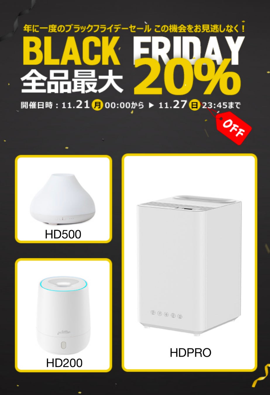 Pokitter年間最大の格安セール「ブラックフライデーセール」の開催シーズン!今年も人気のPokitter製品を最大20%OFFにてご提供です。 看板商品のプロジェクター、セラミックヒーター、加湿器には新商品が登場!この機会にぜひPokitterでのお買い物をお楽しみください。