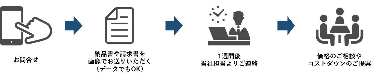 ① 現状の購買データをご提出いただき、必要な部分をヒアリングさせていただくだけの簡単ステップ