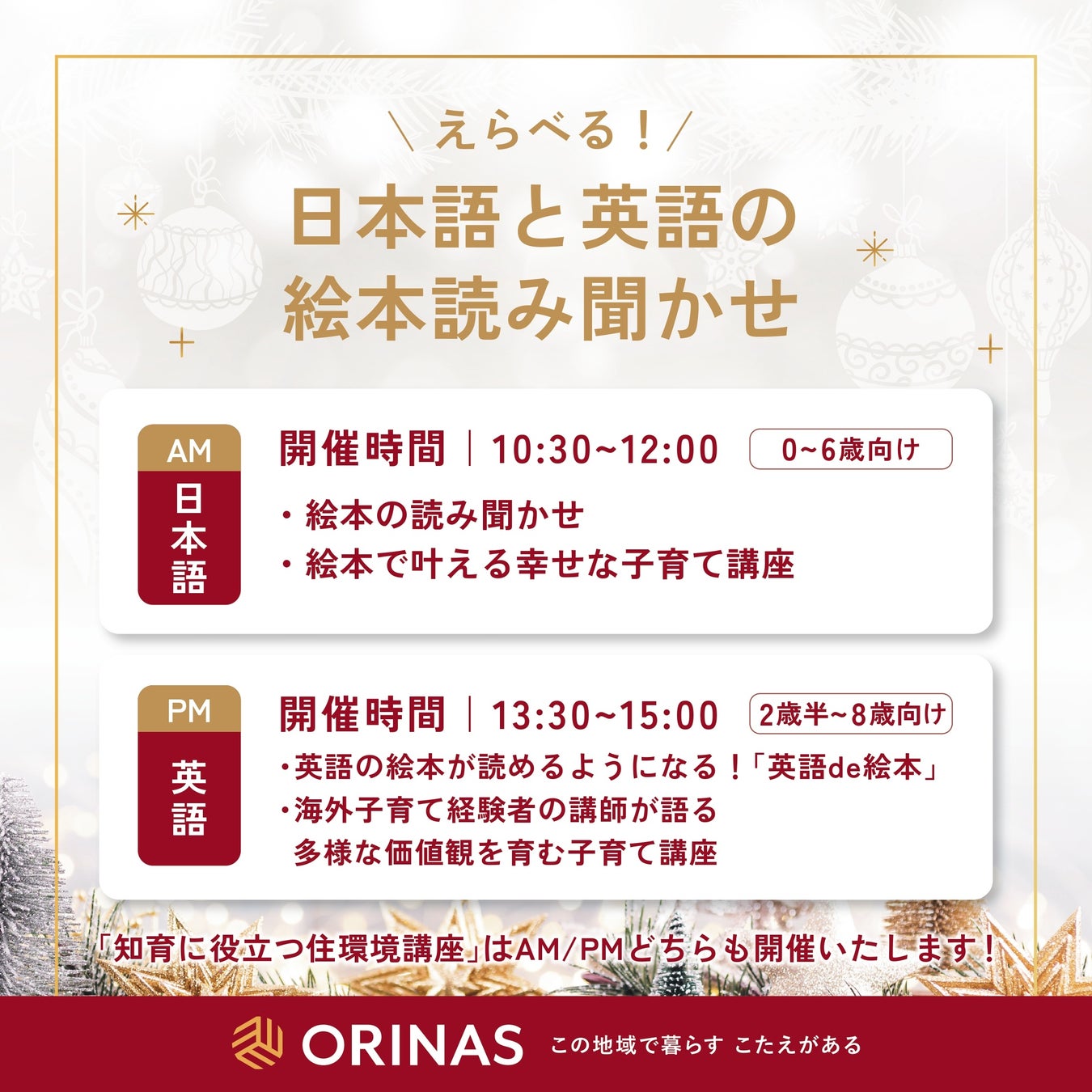 絵本の町・有田川町でクリスマスの絵本イベントを開催! さらに「知育に効果的な住環境講座」も開催します! お子様もご両親も楽しめるイベントです