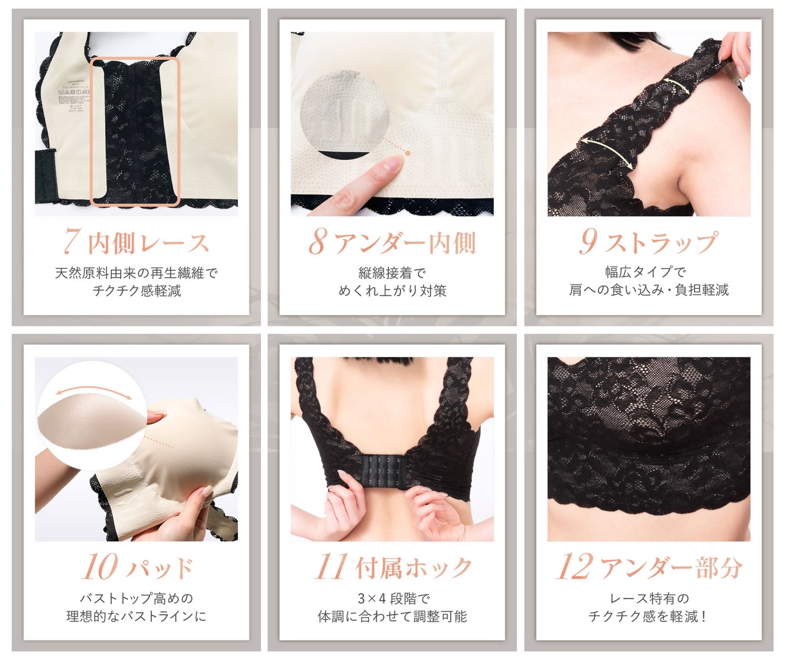 12. アンダー部分:レース特有のチクチク感を軽減