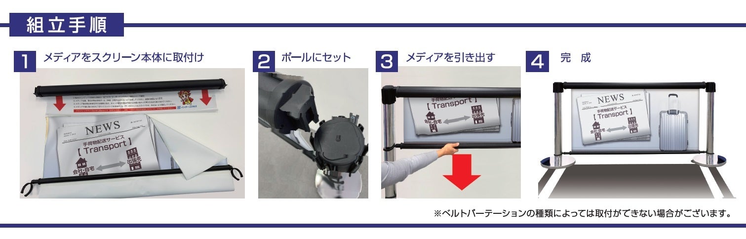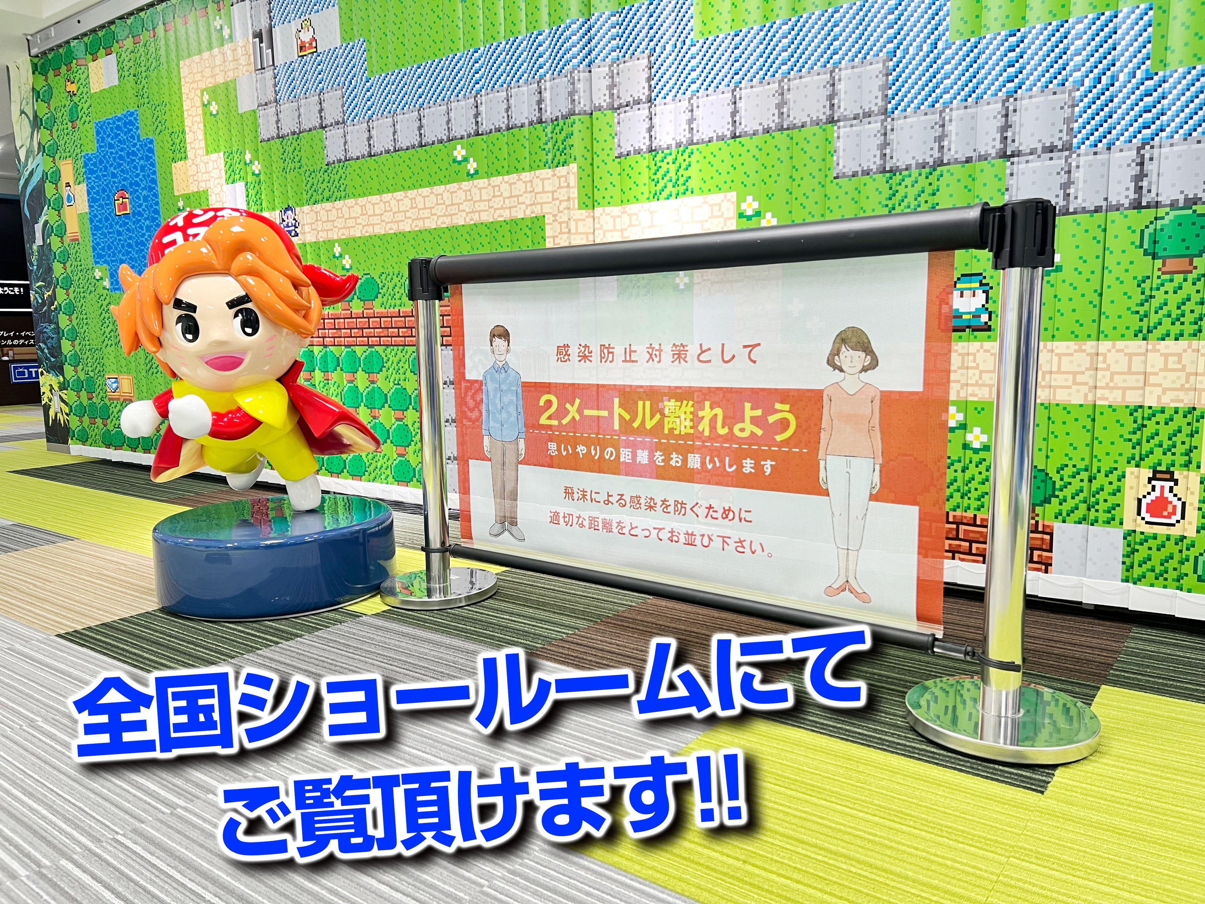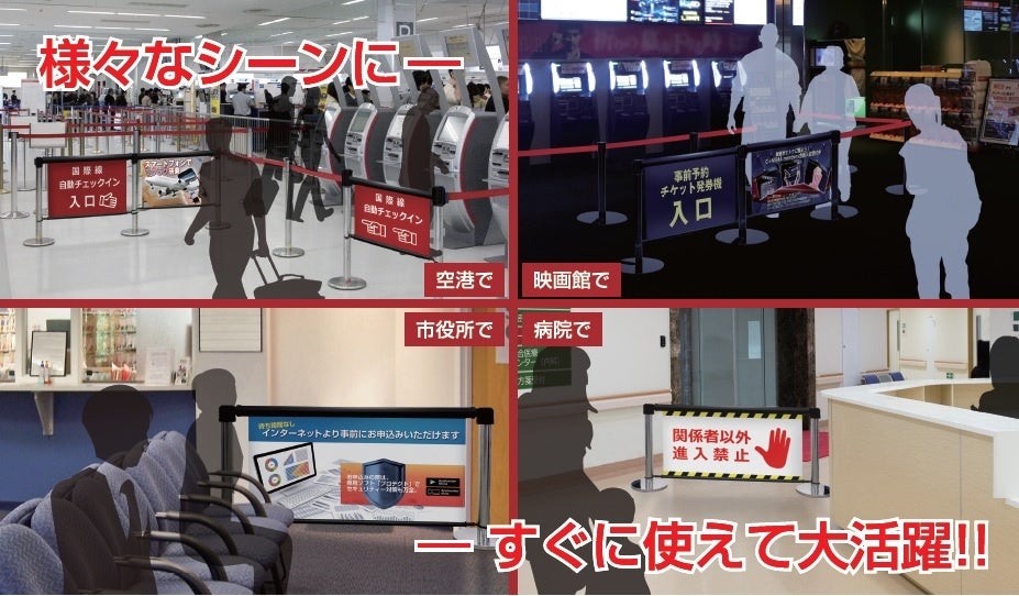 目からウロコ!!ベルトパーテーション間のデットスペースが告知スペースに!!【パーテーションスクリーン】全国ショールームにて展示開始