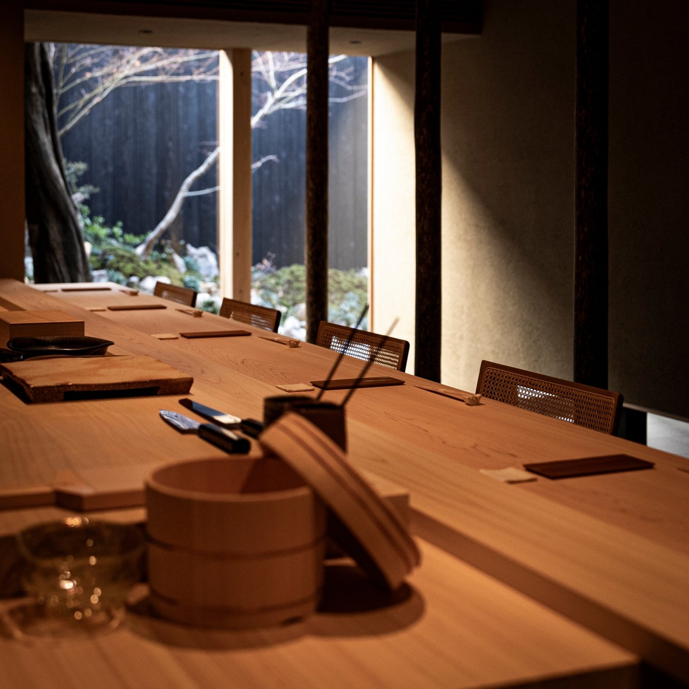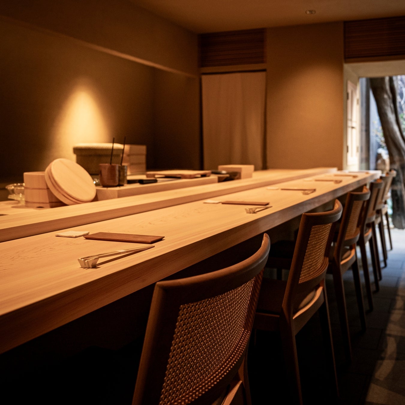 築100年以上の京町家を数寄屋建築の意匠で再生した静謐な空間で、旬の魚介を生かした繊細な握りと、江戸前の技を軸とした鮨コースを提供しています。